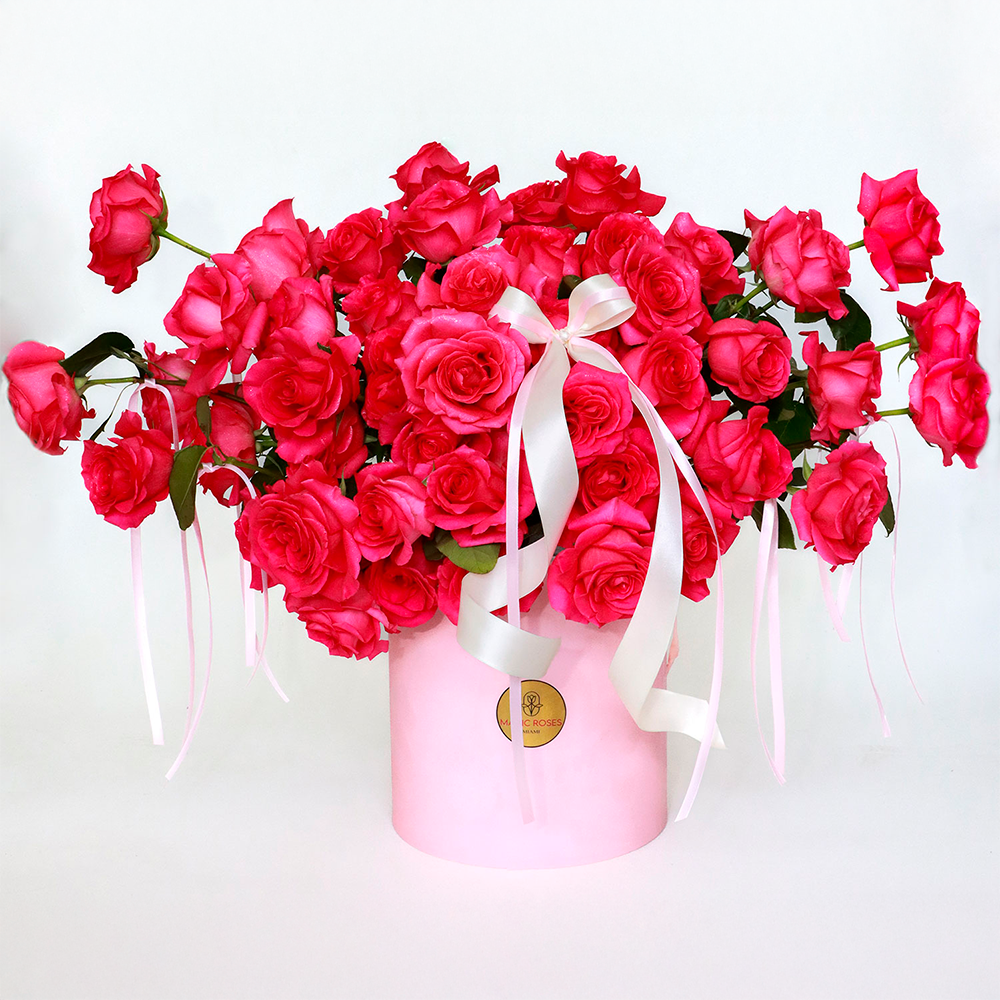 A bold arrangement of vibrant fuchsia roses that exude confidence and sophistication.